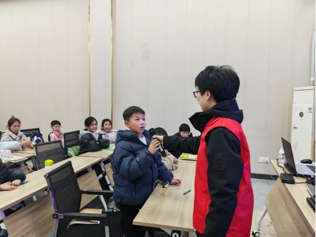 胡莎莎在“情暖童心 七彩假期”公益课堂中,全程协助老师管理课堂、辅导孩子寒假作业,并策划组织手工、诵读等趣味活动。她时刻关注孩子安全,用温暖的陪伴和细致的服务,让孩子们在假期收获知识与快乐,用点滴行动为冬日增添色彩。