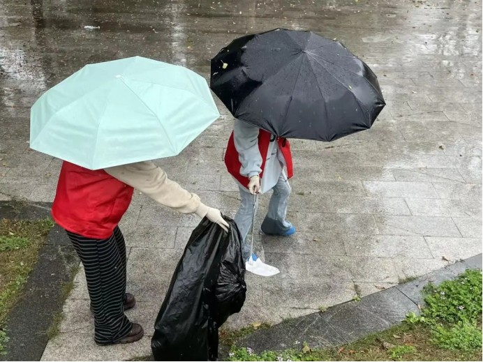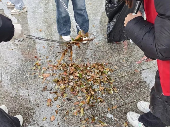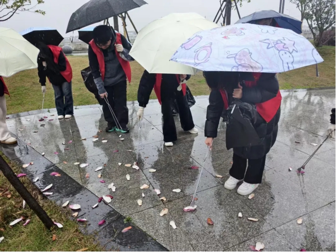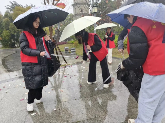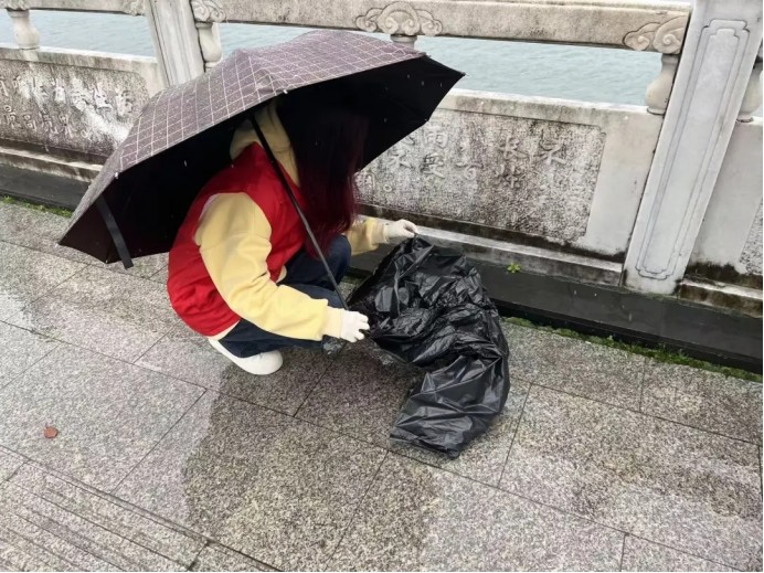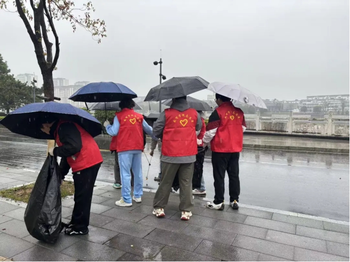 本次活动由数智学院统筹组织,学院入党积极分子、学生会、自律委员会及学生代表共同参与。细雨濛濛中,志愿者们身着统一红色志愿马甲,手持垃圾夹、垃圾袋、扫帚等工具,从学院整齐集结,向着潦河北岸进发。队伍里,教师带头引领方向,学生骨干主动承担任务,普通同学热情响应,大家怀着共同的信念,在雨中汇聚起数智学院的志愿力量,每一步前行都彰显着青春的责任与担当。